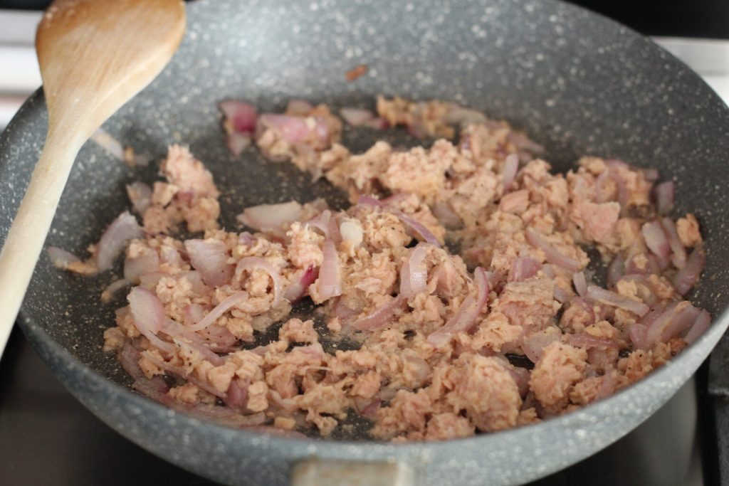 Se desejar, pode adicionar salsinha fresca ao atum durante o cozimento
