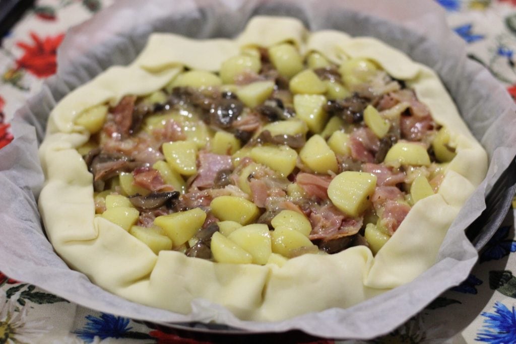 Passos para realizar a torta salgada com batatas, speck e cogumelos