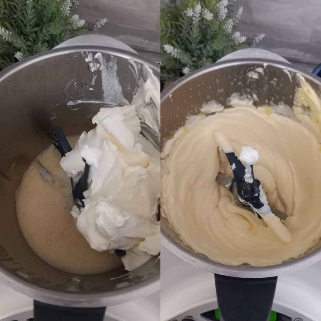 Uma vez pronto, adicione o mascarpone. Bata a mistura por 40 segundos na velocidade 3.