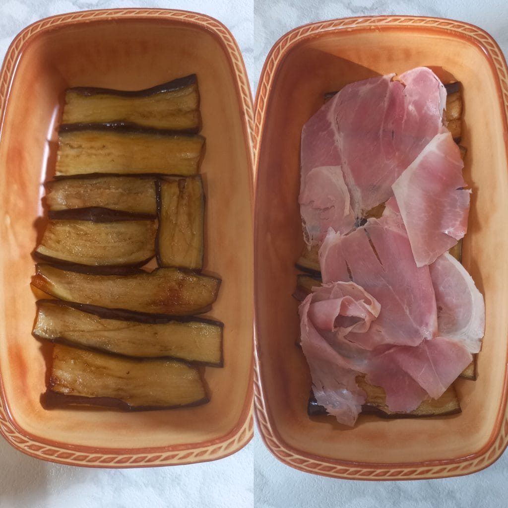 Hoje eu apresento a parmigiana branca, fruto das minhas experimentações na cozinha e da minha imaginação. A versão branca requer berinjelas fritas e não empanadas, e o recheio é composto de presunto cozido e provolone defumado. Experimentei essa combinação de ingredientes e descobri que são muito equilibrados entre si; a diferença substancial, no entanto, são as berinjelas fritas: não adianta focar na sua delícia, o resto vem naturalmente.