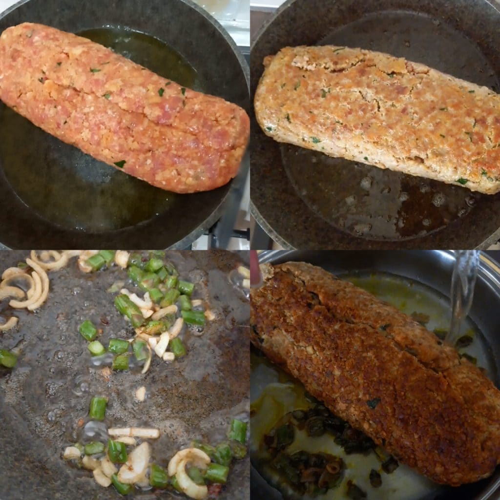 • Pegue uma panela e refogue o rocambole, virando-o sem deixá-lo quebrar.