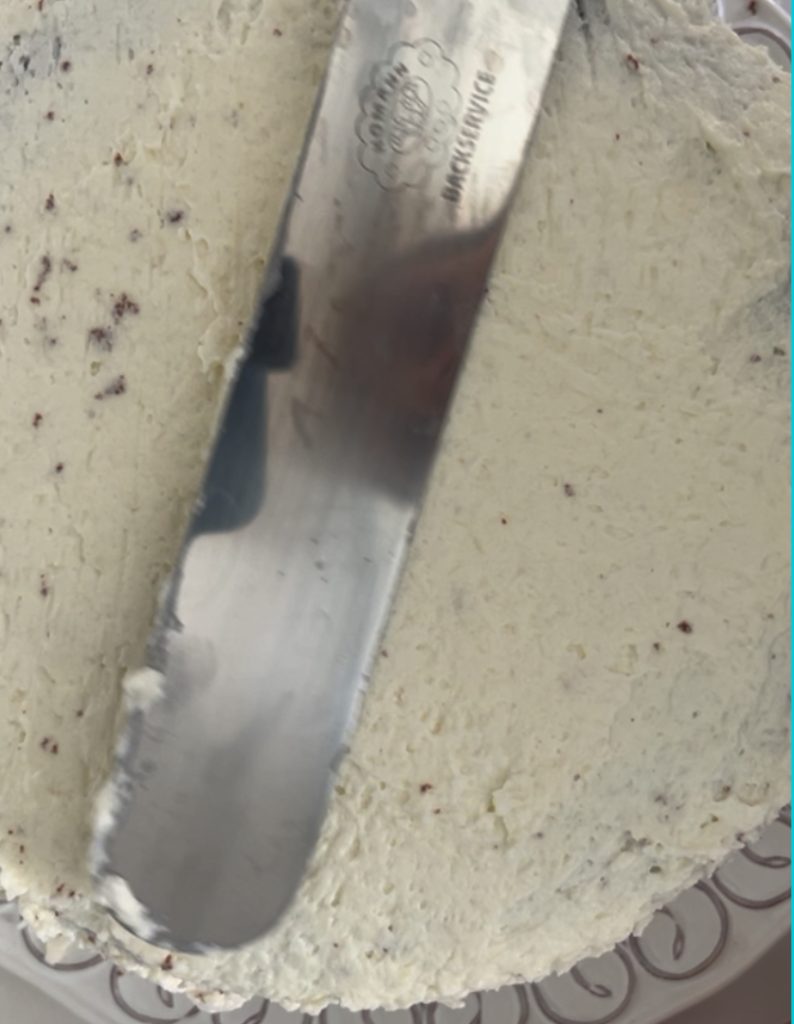 Com uma espátula, espalhe o restante do creme também nas laterais.
