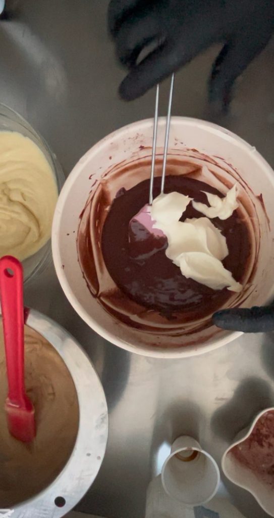 Depois de misturar tudo, divida o mascarpone em três partes iguais. Então, coloque 85 g em uma tigela,