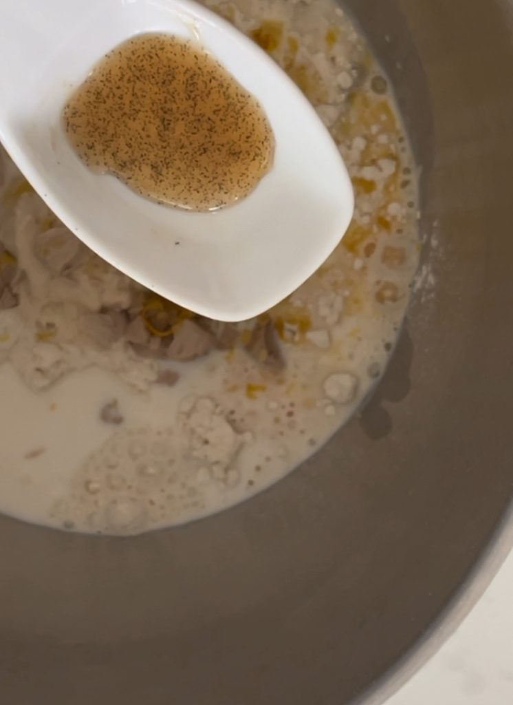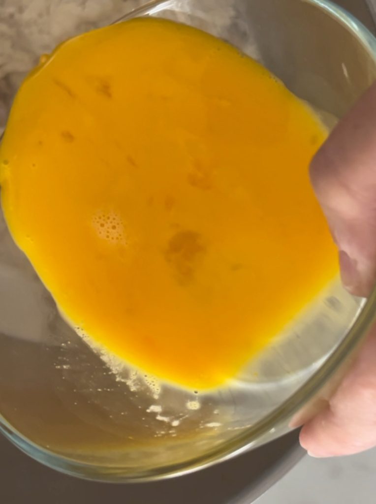 Quando todos os ingredientes estiverem bem unidos e misturados, adicione a última parte do ovo.