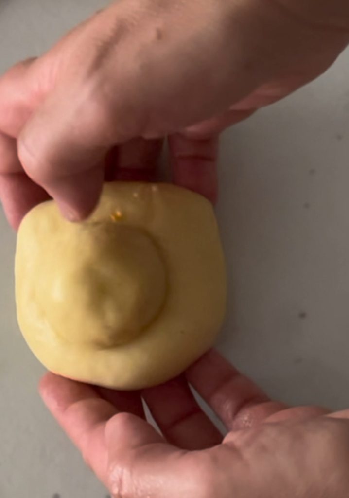 Transfira para a superfície de trabalho e faça uma bola levemente com a massa