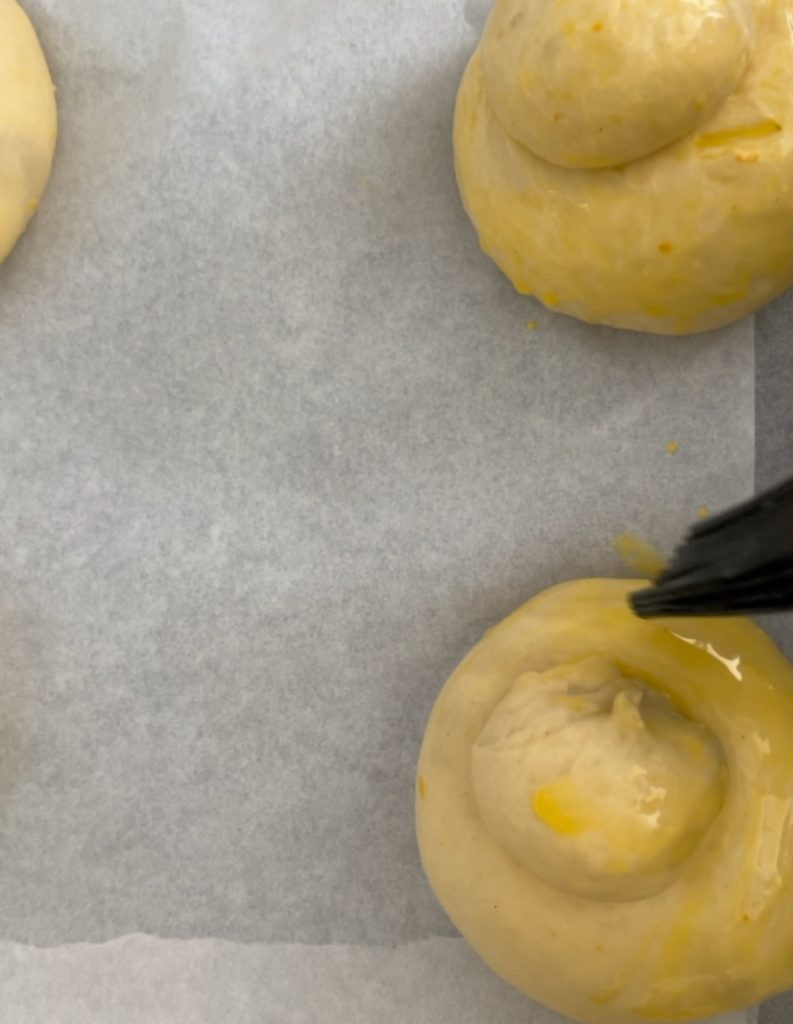 Coloque as brioches em uma assadeira coberta com papel manteiga