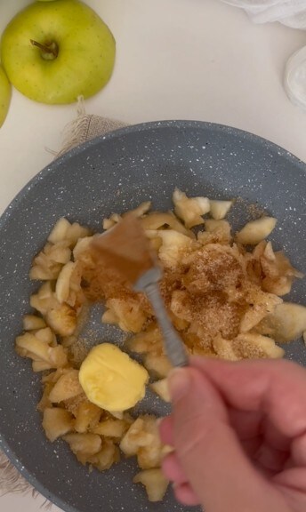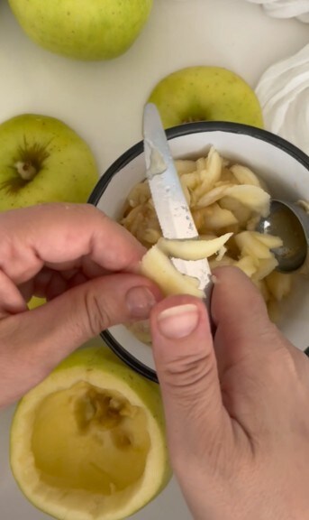 Despejar em uma forma untada e enfarinhada, despejar a mistura e colocar na superfície em forma de leque as fatias de maçã cortadas finas.