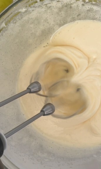 Bater a mistura por pelo menos 10 minutos, deve quase triplicar.