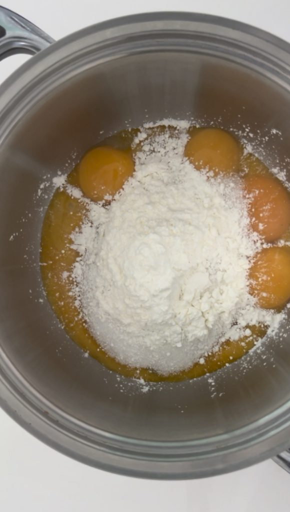 e o amido de arroz. Se você quiser mais firme, amido de milho.
