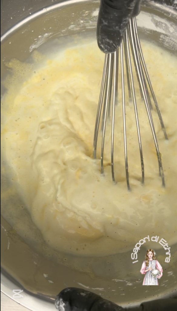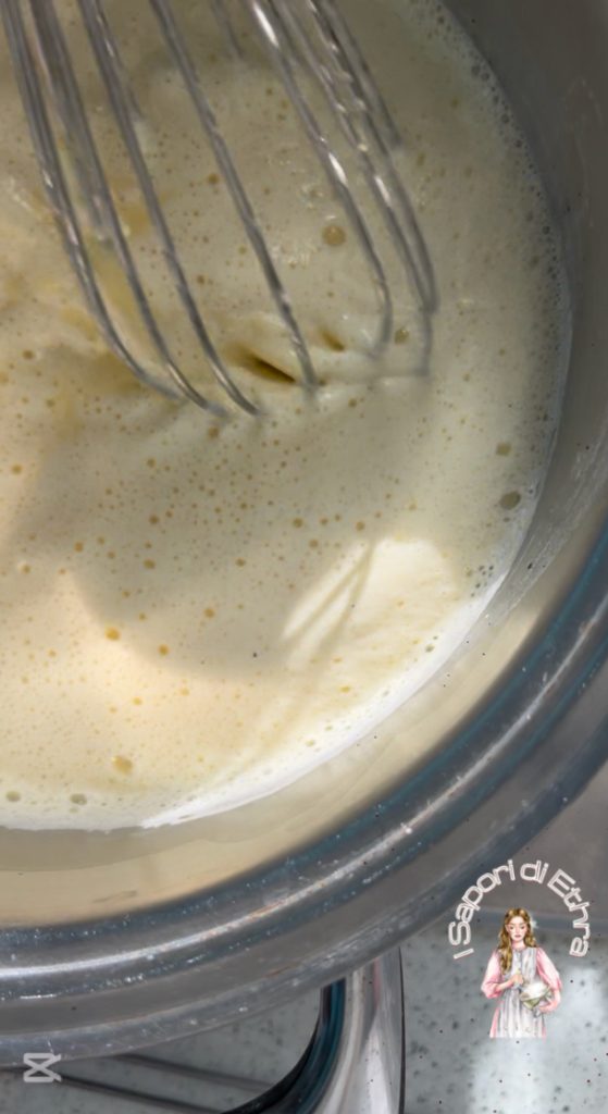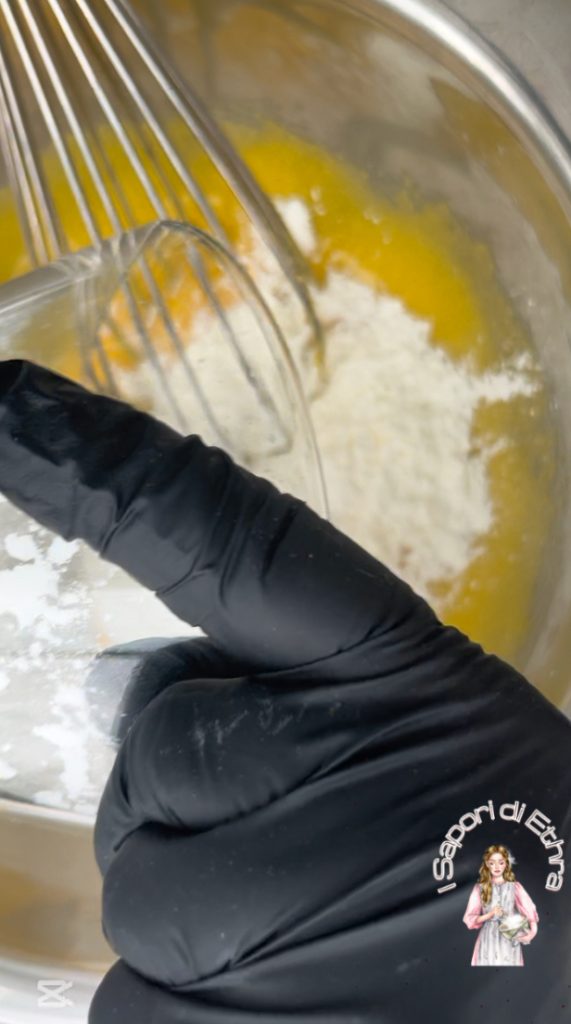 Enquanto isso, em uma tigela, misture as gemas e o açúcar. Mexa rapidamente.