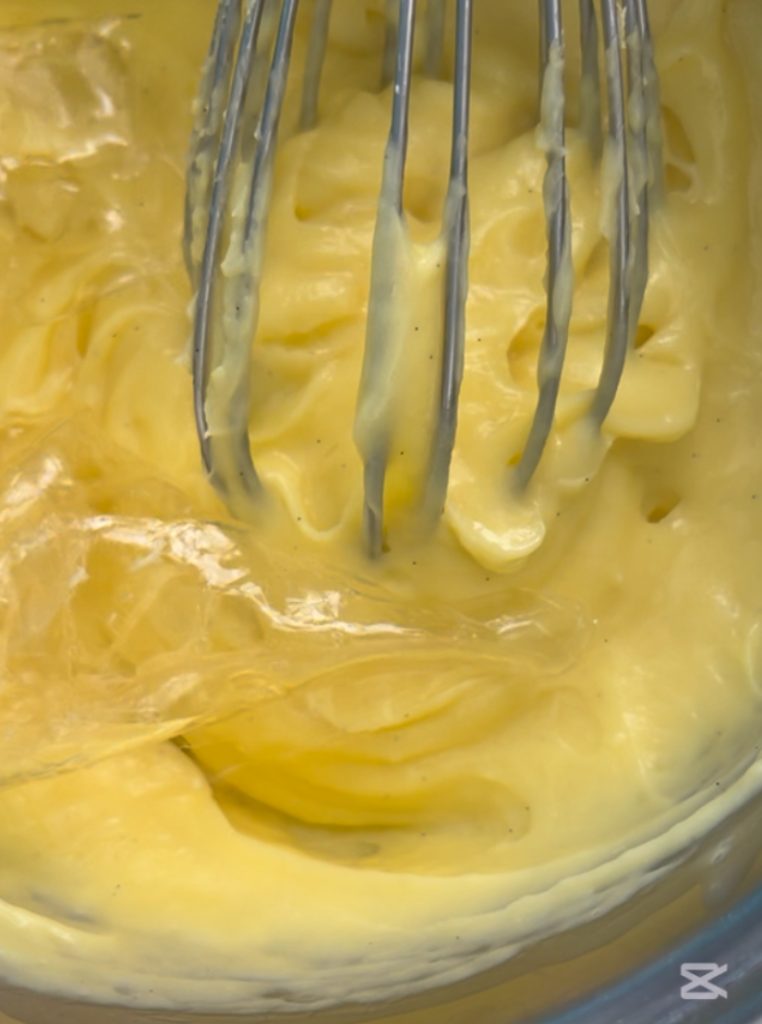 Quando o creme estiver pronto, desligue o fogo e adicione as folhas de gelatina que foram previamente amolecidas em água fria.