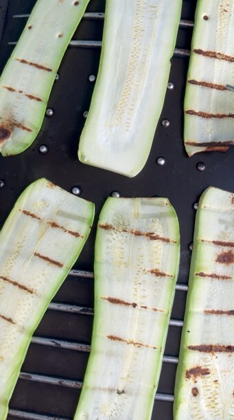 A primeira coisa a fazer é cortar as abobrinhas com um mandolim