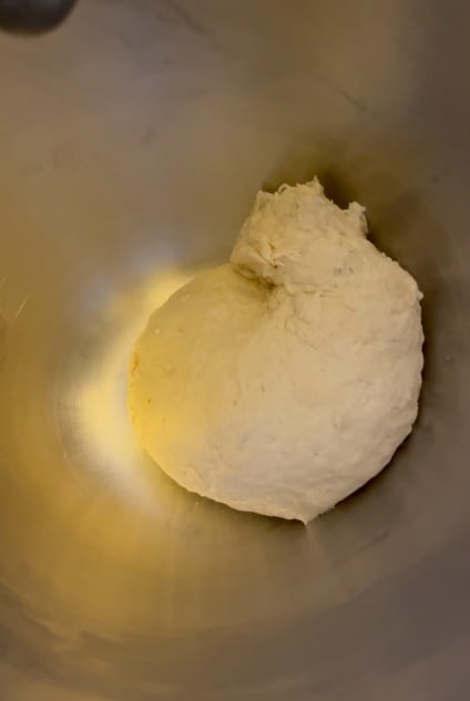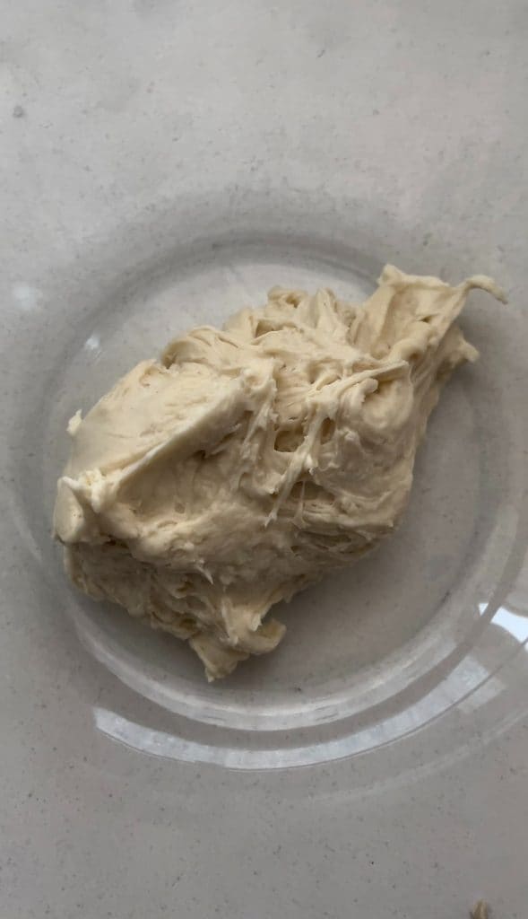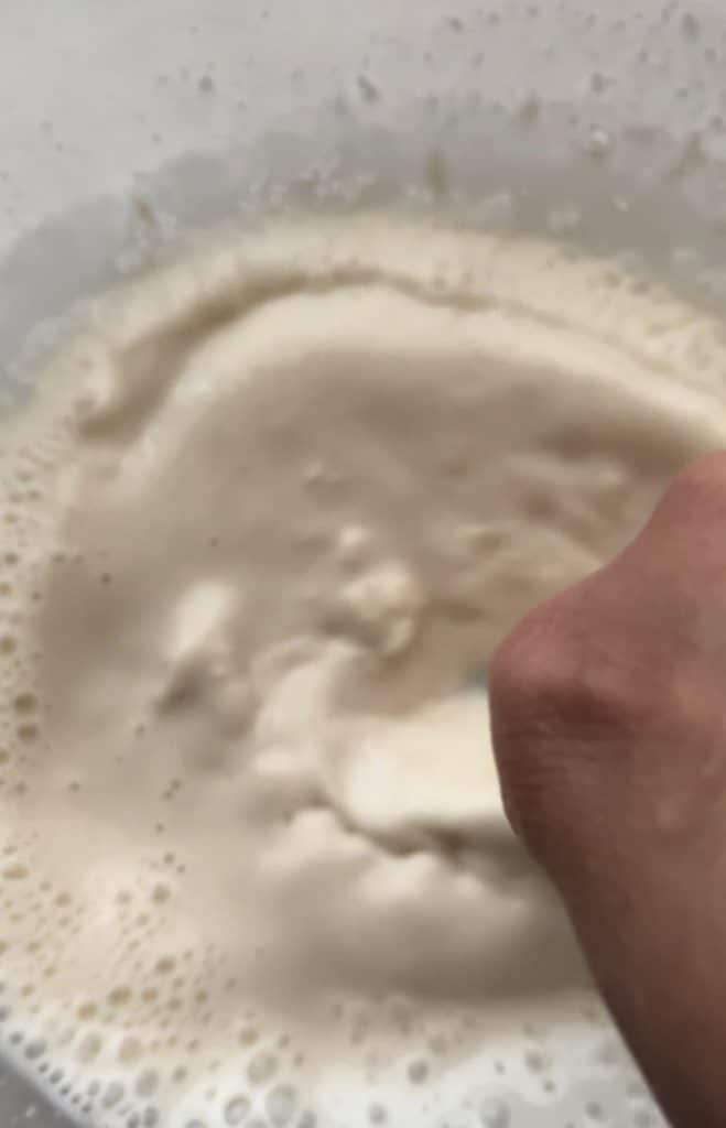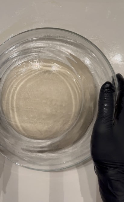 Refrescar nosso fermento natural e reservar em uma tigela o que sobrou e não foi refrescado, com 100 g de água