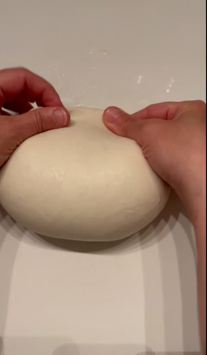 Abrir a massa com os dedos umedecendo as mãos com azeite de oliva extravirgem e deixar fermentar no forno até que esteja pronta para assar.