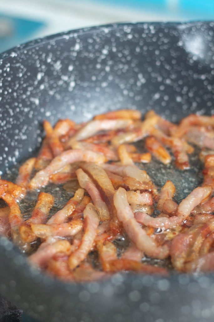 Depois de cortar o guanciale, escaldá-lo na panela, juntamente com a pele que naturalmente não será inserida na lasanha. Liberará ainda mais gordura, tornando-o crocante no ponto certo
