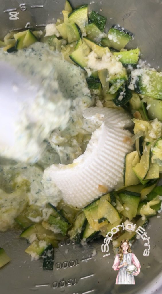 Ao final do cozimento das abobrinhas, coloque-as em um recipiente ou tigela junto com o parmesão e a ricota