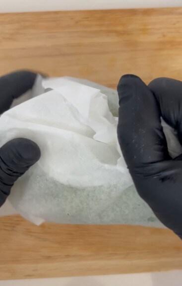 Feche o pimentão com papel manteiga e asse em forno pré-aquecido a 180° por 20 min