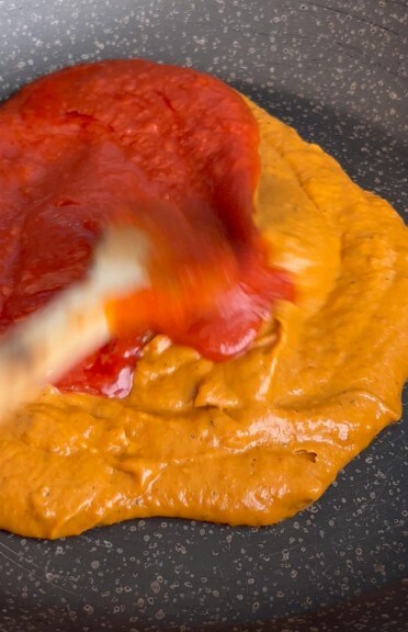 Em uma frigideira antiaderente, despeje o molho obtido.