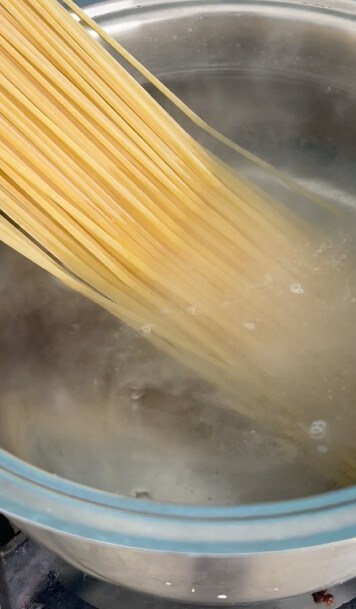 Aqueça a frigideira com um fio de azeite evo e despeje o creme obtido com uma concha de água do cozimento da massa
