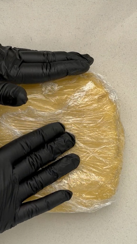 • Retirar a massa da geladeira, quebrá-la em pedaços e trabalhar novamente