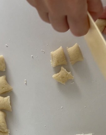 Separar pedaços da massa e cobrir imediatamente para não secar.