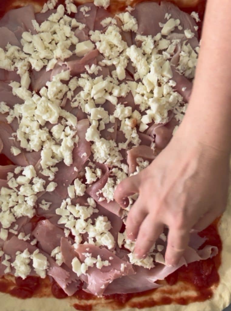 Se você esteve em Nápoles, não pode deixar de provar a famosa PIZZA PARIGINA DA TRADIÇÃO NAPOLITANA. Nada mais é do que uma deliciosa pizza rústica formada por duas massas diferentes, a da pizza e a da massa folhada, que contém presunto cozido, tomate pelado e caciocavallo ou provolone. Garanto que é algo super convidativo de verdade. Eu usei uma massa folhada comprada, mas se você tiver vontade ou tempo para fazer a sua própria, seria o ideal. Minha massa folhada comprada era um pouco pequena, então tive que usar duas e fazer um acréscimo. Naturalmente, a clássica é feita com este recheio, mas você pode tranquilamente inovar com o que mais gostar. Eu, por exemplo, também adicionei mozzarella. Diz-se que se chama assim porque “Parigina” significa “p’a reggina”, e significa simplesmente “para a rainha”, e que foi uma rainha de Nápoles que teve uma pizza dedicada toda para ela.