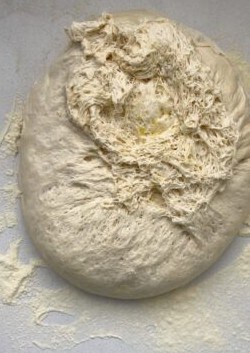 Retire pedaços de massa, o tamanho depende do quão grandes você deseja as pizzette. Deixe descansar por mais 1 hora cobertos com filme plástico ou pano.