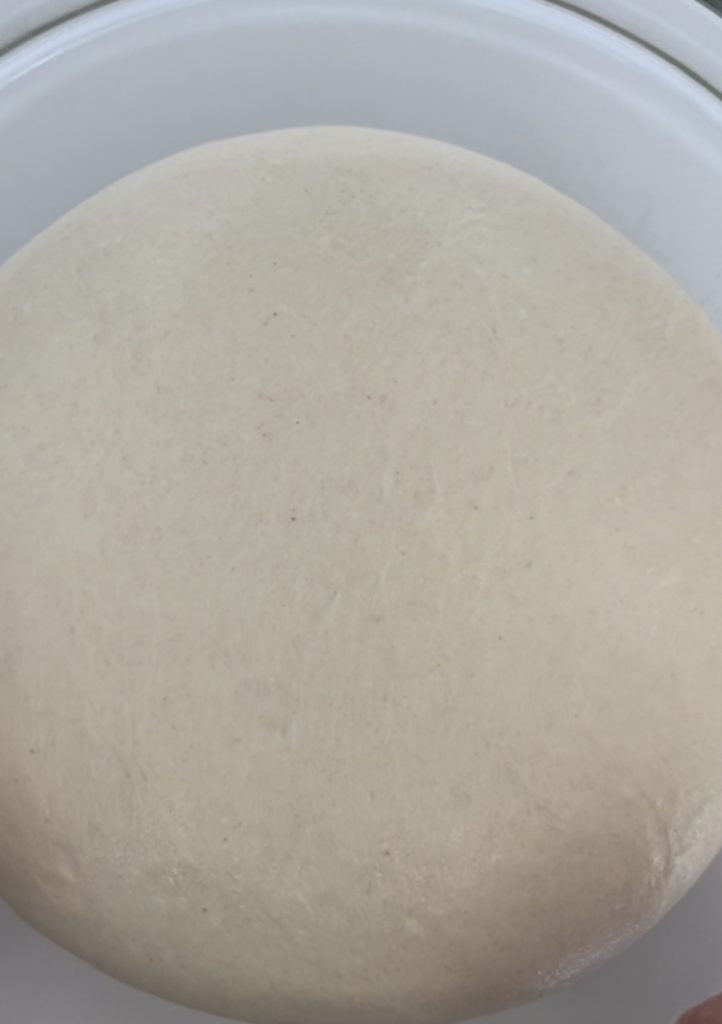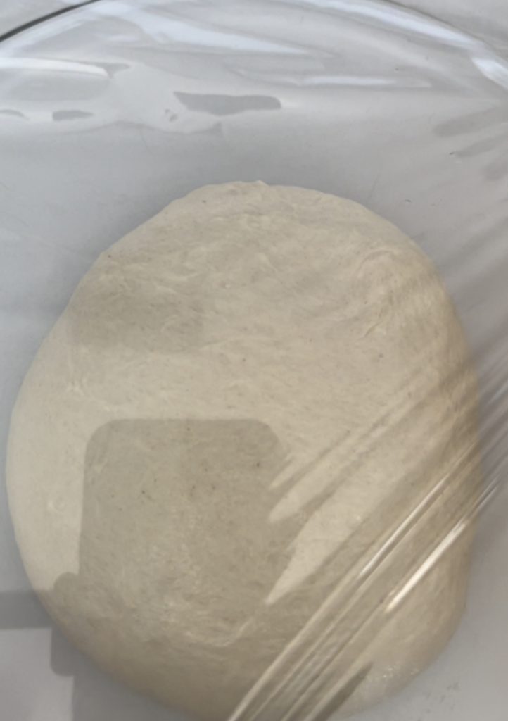 Quando a massa ficar lisa, transferir para a bancada e bolear levemente a massa.