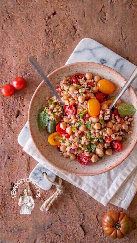 Este prato é um verdadeiro hino à simplicidade e à genuinidade dos ingredientes. O farro, um cereal antigo e versátil, une-se à cremosidade do grão-de-bico cozido, à doçura explosiva dos tomatinhos coloridos e ao perfume inconfundível do manjericão fresco recém-colhido. Uma combinação de texturas e sabores que conquista à primeira garfada.