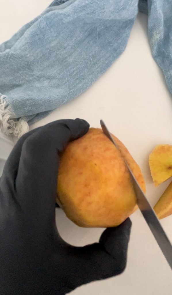 Corte primeiro um pêssego em pedaços