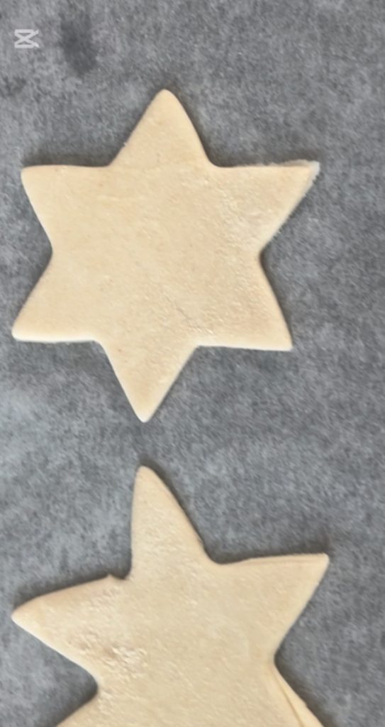 Deixe esfriar e com delicadeza corte ao meio cada estrela.