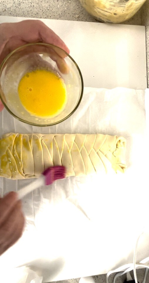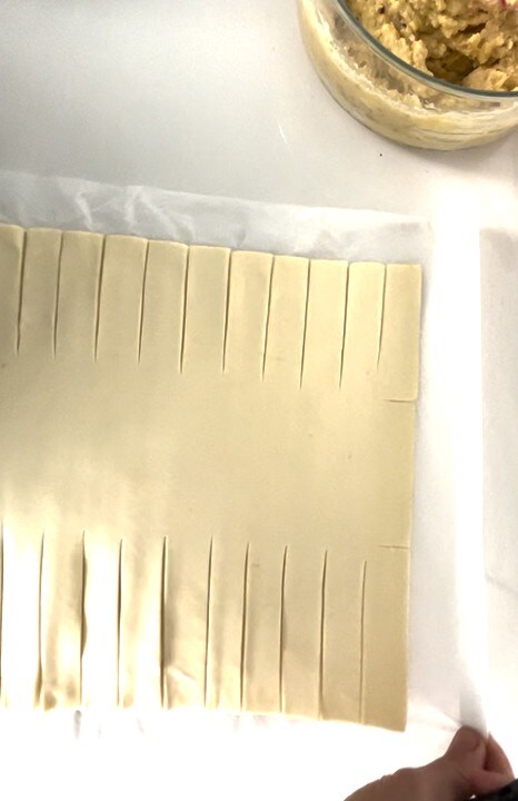 Hoje compartilho com vocês uma receita fácil, rápida e acima de tudo muito, muito deliciosa: o Strudel de massa folhada com creme, biscoitos e nozes. Durante as festas, sabe-se que são feitos muitos doces, entre eles o clássico creme de confeiteiro que é a base de muitas preparações. Pode, portanto, facilmente acontecer de sobrar um pouco. Este, garanto a vocês, é um modo super eficaz de usar o creme de confeiteiro que sobrou. Eu adicionei ao creme os biscoitos que tinha em casa, mas se vocês preferirem, coloquem aqueles que mais gostam, até mesmo de chocolate. Devo dizer que os doces feitos assim rapidamente sempre me surpreendem porque quase nunca os planeja, e eles acabam num instante. Mas, mesmo que não sobre creme de confeiteiro, recomendo fazer na hora porque realmente vale a pena. Se vocês gostam de doces feitos com ingredientes que sobraram, leiam também os Bon bons cremosos recheados