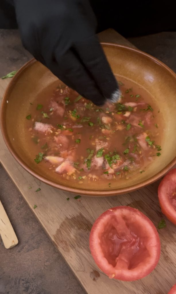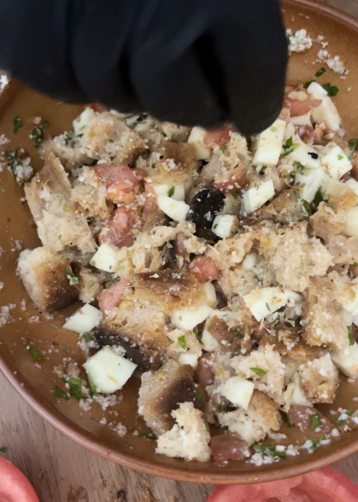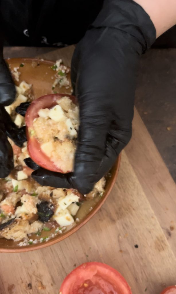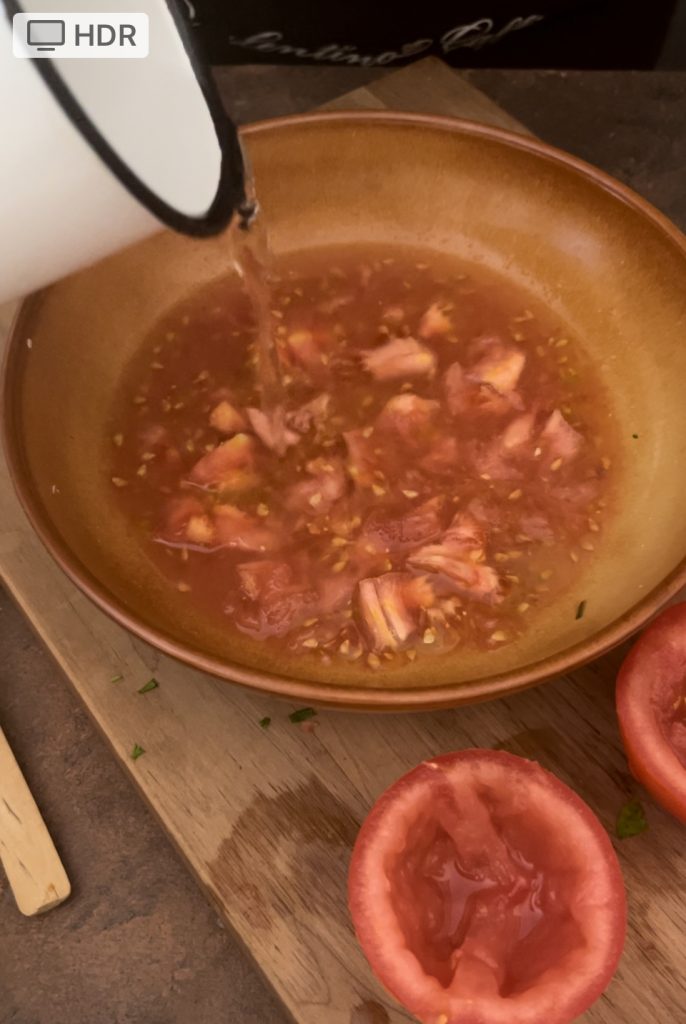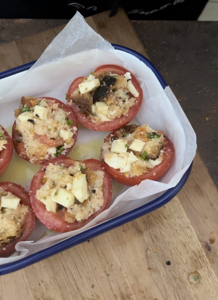 Hoje compartilho com vocês uma das receitas de verão por excelência, os TOMATES RECHEADOS COM E SEM FORNO. Pois é, não os habituais tomates recheados com arroz e atum, mas um recheio que contém todo o sabor e gosto mediterrâneo. Uma receita que me remete às tradições da Apúlia. Minha avó, de fato, sempre me fazia a deliciosa acquasale, um prato simples, fácil e rápido de preparar. Era preparado especialmente por pescadores e agricultores para consumir enquanto estavam no trabalho. É geralmente feito mergulhando o pão caseiro em água e temperando-o com sal, azeite de oliva extravirgem, tomate e orégano. Normalmente, eram adicionados pedaços de carosello e cebola finíssima, de preferência a roxa de Tropea ou aquela de Margherita di Savoia, bem doce. Eu preparei esses tomates recheados assando-os no forno com esse recheio de acquasale, e também os fiz sem assar no forno, de ambas as maneiras ficam deliciosos. Aqui está a receita