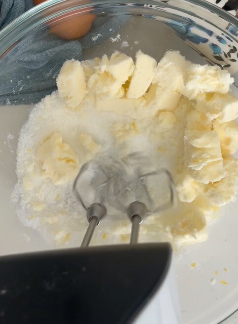 • Em uma tigela, misture a manteiga e o açúcar para preparar a massa