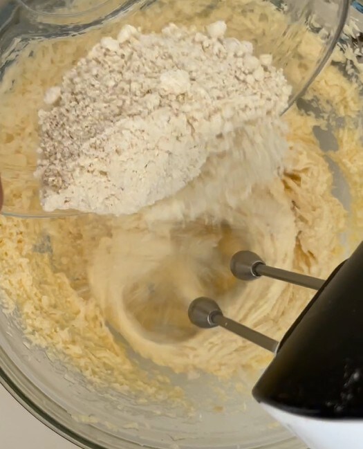 • Adicione a farinha 00 e misture com a batedeira elétrica até obter um creme liso.