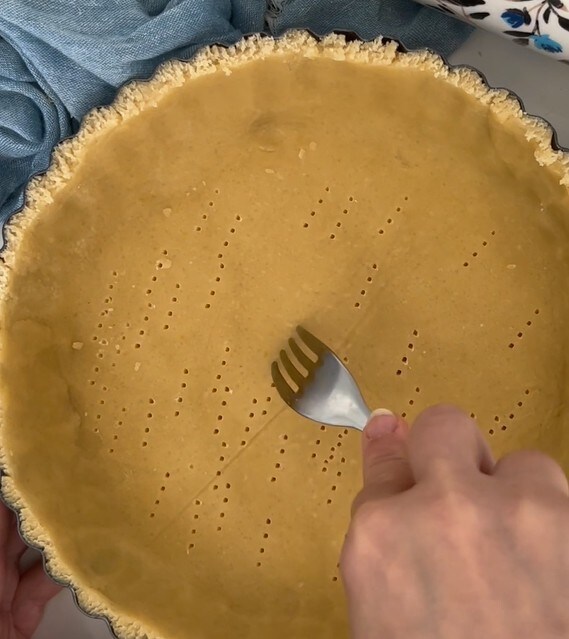 • Coloque a massa na forma e retire o excesso que sobrar. Com a massa restante, podemos fazer biscoitos simples.