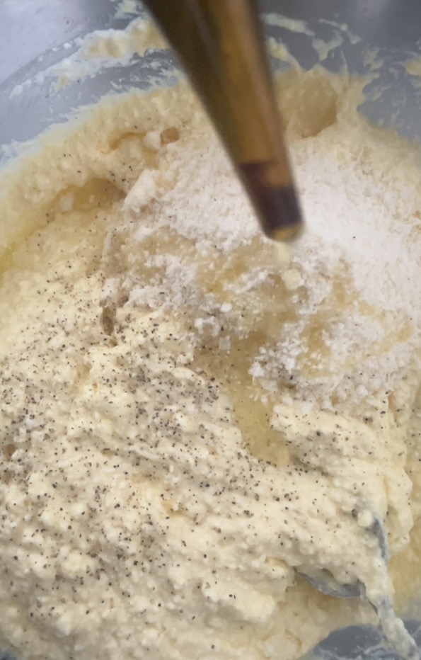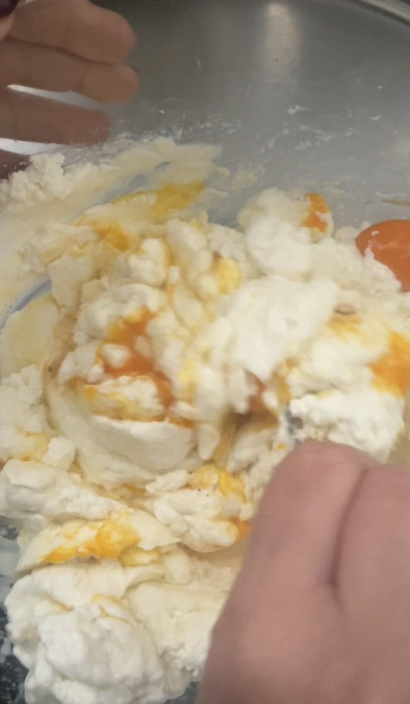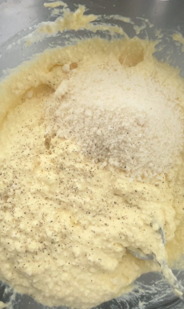 Em uma tigela, coloque a ricota e os ovos