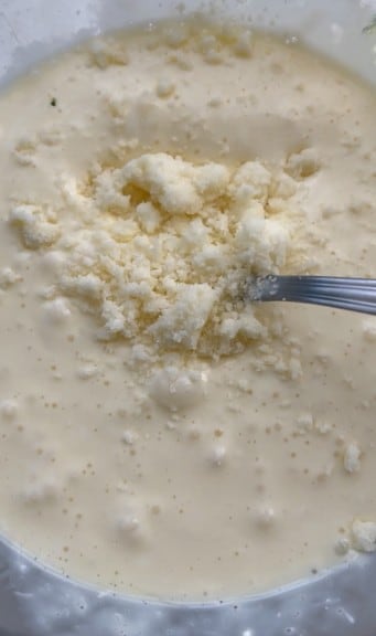 E continue alternando creme e abobrinhas até acabarem, finalizando com o grana por cima.