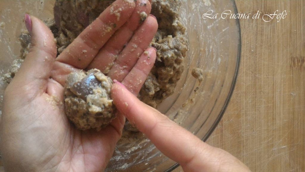 • Misture bem para integrar os ingredientes e, com as mãos levemente úmidas, pegue pequenas porções um pouco maiores que uma noz, formando as almôndegas.