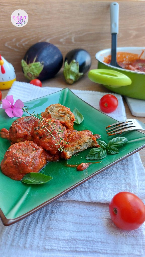 Talvez eu já tenha mencionado isso várias vezes, mas para aqueles que ainda não sabem, na nossa Sicília existe um instinto quase visceral de empanar e fazer almôndegas de qualquer coisa: carne, peixe, vegetais e até leguminosas! Os “purpetti” ou “badduzze” em particular, nunca faltam nas nossas mesas, talvez porque, tradicionalmente, são o prato do dia seguinte, ou seja, feito com as sobras de um almoço ou jantar anterior, portanto, também são um ótimo prato de reaproveitamento! Com o tempo, preparar almôndegas tornou-se um verdadeiro hábito, independentemente da abundância durante as refeições, e foi assim que surgiram muitas versões até de um mesmo ingrediente! Por exemplo, as de berinjela, são frequentemente preparadas de forma simples com a adição de ovos, pão dormido, queijo pecorino e salsa, mas, se quisermos, podemos torná-las mais saborosas adicionando outros ingredientes, como no meu caso, a ricota. Prepará-las é realmente muito simples, e são uma explosão de sabor a cada mordida! A receita prevê uma primeira cocção no forno para depois serem mergulhadas em um delicioso molho à prova de ‘scarpetta’ e passadas cinco minutos na panela. Serão o perfeito segundo prato vegetariano para conquistar os paladares mais exigentes com sua maciez e sabor deliciosamente apetitoso!