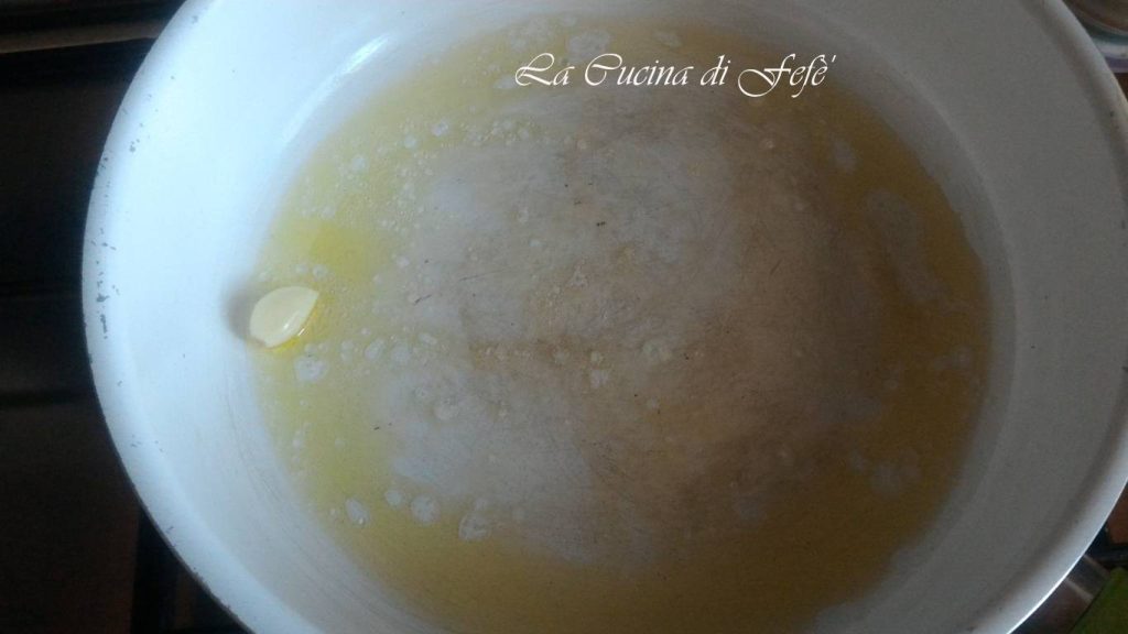 Enquanto isso, em uma panela grande e antiaderente com fundo grosso, doure o dente de alho com um generoso fio de azeite.