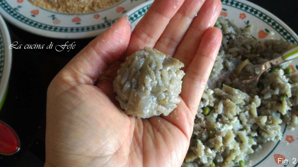 Misture bem e com as mãos levemente úmidas, pegue uma colher cheia e forme uma bolinha um pouco maior que uma noz (fig. 2).