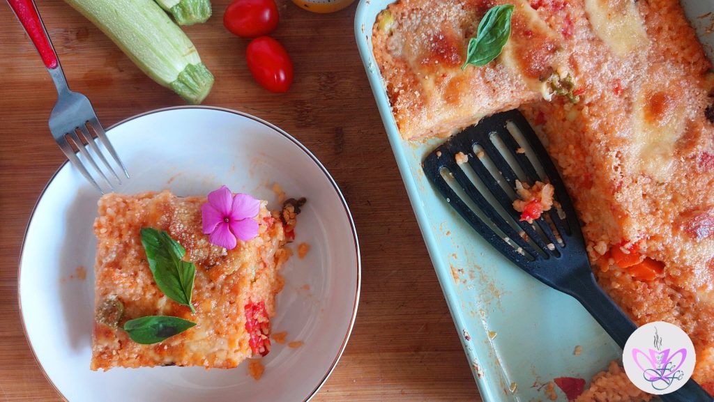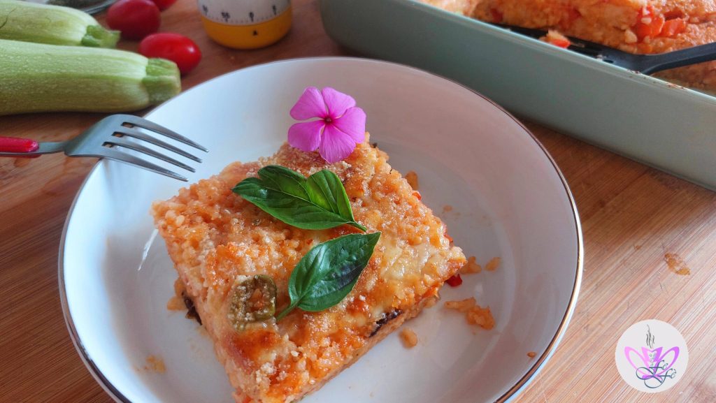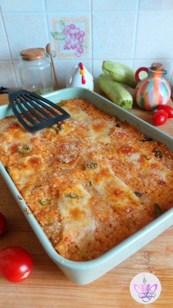 No verão, a palavra de ordem na minha casa é nunca ligar o forno, a menos que a receita em questão seja algo que eu amo comer de paixão, e nesse caso se torna a exceção que confirma a regra! Este é exatamente o caso do arroz de forno, no meu caso com tomates frescos e abobrinhas, simples de preparar e com aquela bela crosta na superfície que recompensa o sacrifício! Os ingredientes são poucos, simples e muitas vezes já presentes nas nossas dispensas ou geladeiras: arroz, abobrinhas, molho de tomate, tomatinhos, muitos aromas e sabores mediterrâneos começando pelas alcaparras de Pantelleria e as azeitonas do Etna. Enfim, um prato principal vegetariano genuíno, mas rico em sabor, que irá te conquistar na primeira mordida! Será perfeito para todas as suas ocasiões especiais em família ou com amigos, sem contar a sua versatilidade em ser consumido, uma vez frio, em porções individuais como marmita para a pausa de almoço no escritório ou na praia.