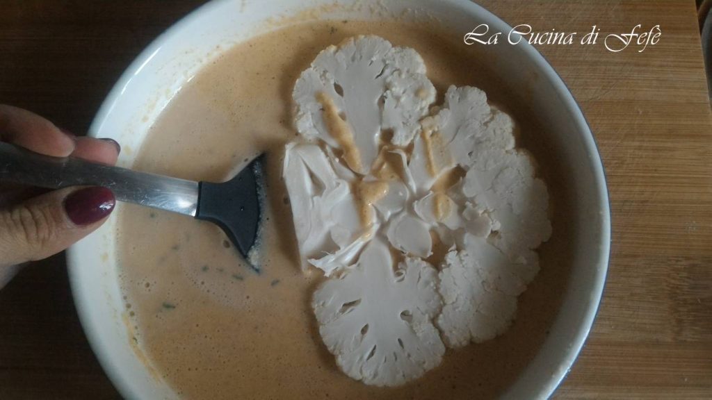Variar a alimentação é uma boa maneira de desfrutar plenamente os benefícios dos alimentos que colocamos na mesa. Eu gosto muito de brincar com a imaginação, e se há uma coisa que amo fazer é justamente surpreender com os vegetais que no imaginário comum são pouco apreciados ou subestimados! É o caso da couve-flor, especialmente o tipo branco, de sabor muito neutro, quase insípido, tanto que anos atrás criei um falso molho bechamel alternativo ao tradicional, que combina com tudo justamente por seu gosto delicado! Hoje, no entanto, proponho a couve-flor em outra forma, que evoca os bifes de frango, mas muito mais genuínos e saudáveis! Prepará-los é realmente muito fácil e até bastante rápido, basta cortar a couve-flor em fatias, criar uma massa vegana com água e farinha de grão-de-bico, passar cada fatia nesta massa e depois em uma mistura de farinha de rosca e queijo parmesão ralado e pronto, direto ao forno! Uma receita fácil, perfeita para todos aqueles que por motivos ou necessidades alimentares, não podem usar ovos ou desejam seguir uma dieta mais atenta às calorias e mais rica em fibras, vitaminas e sais minerais. Você pode servir esses bifes de couve-flor como prato principal vegetariano, acompanhando-os com uma salada fresca da estação, assim como faria com os clássicos bifes de frango. Além disso, são assados no forno, mas você também pode cozinhá-los em uma fritadeira a ar, tornando-os ainda mais leves e digeríveis.