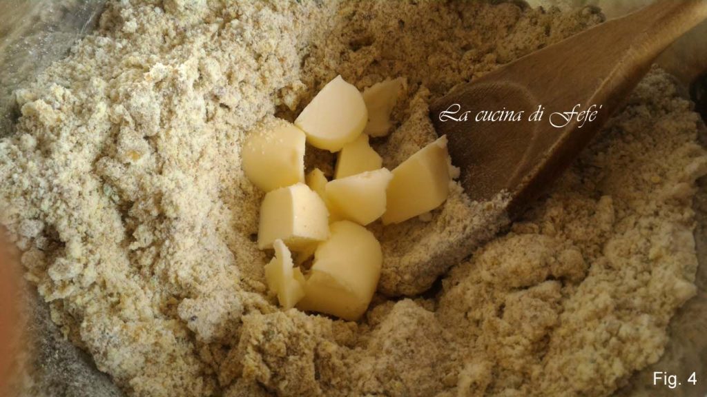 • Uma vez que o ovo estiver incorporado, adicione também a manteiga em cubos (fig. 4).