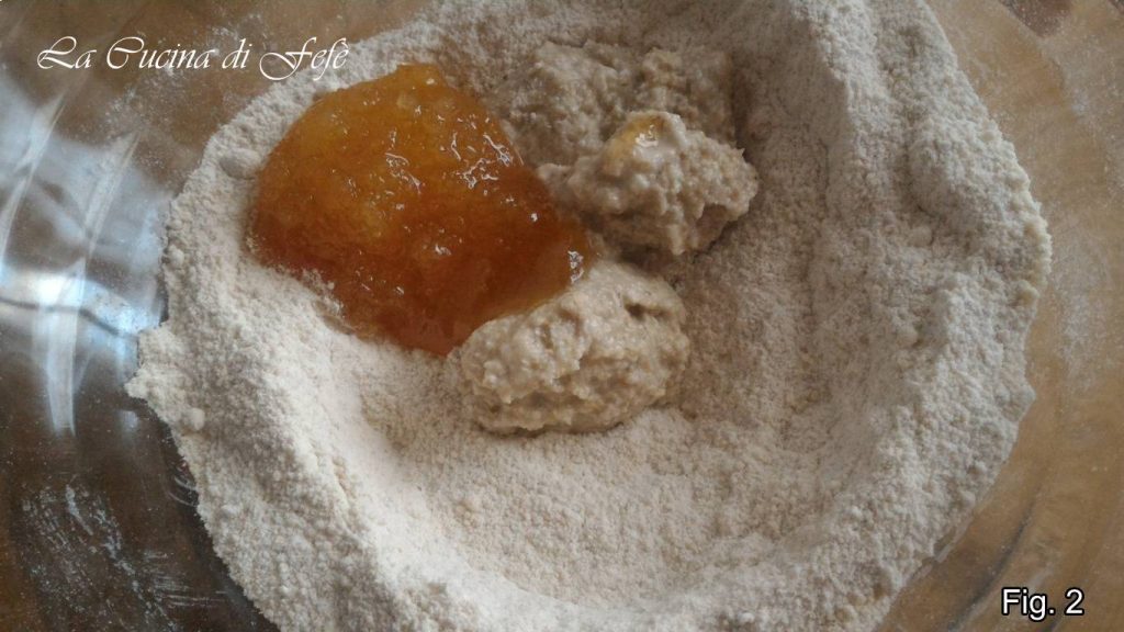 Misture-as com a ajuda de uma colher de pau, então faça uma cova no centro e adicione a okara de aveia e o mel (fig. 2).