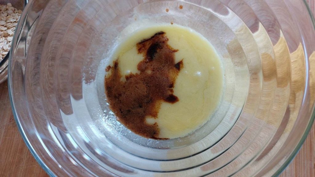 Acrescente também os flocos de aveia.