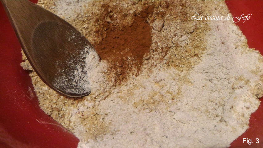 Despeje a mistura obtida em uma tigela, adicione a farinha de aveia integral e a canela (fig. 3).