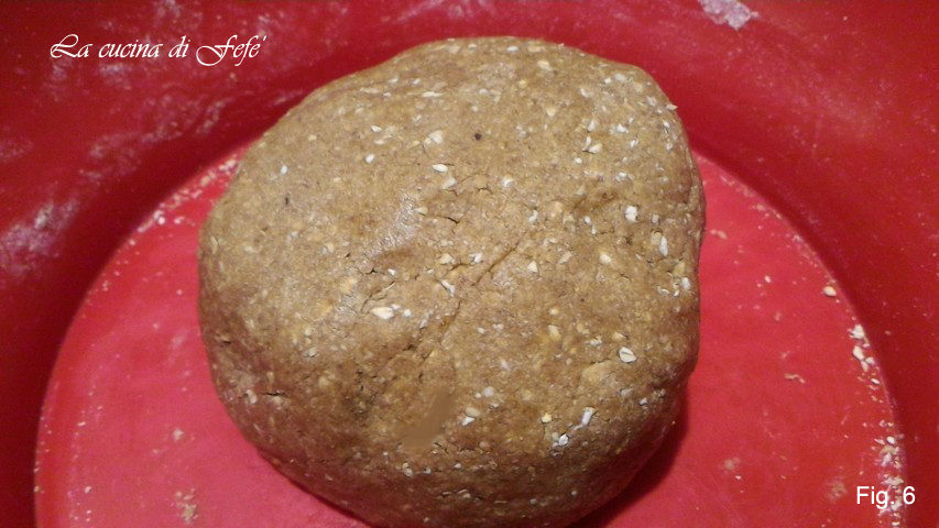 Comece a misturar do centro, incorporando o restante aos poucos. Agora trabalhe a mistura com as mãos até incorporar todos os ingredientes (fig. 5).