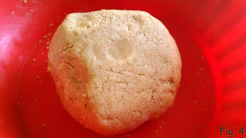 Comece a sovar energicamente com as mãos até obter um pedaço de massa compacto e liso (fig. 4).